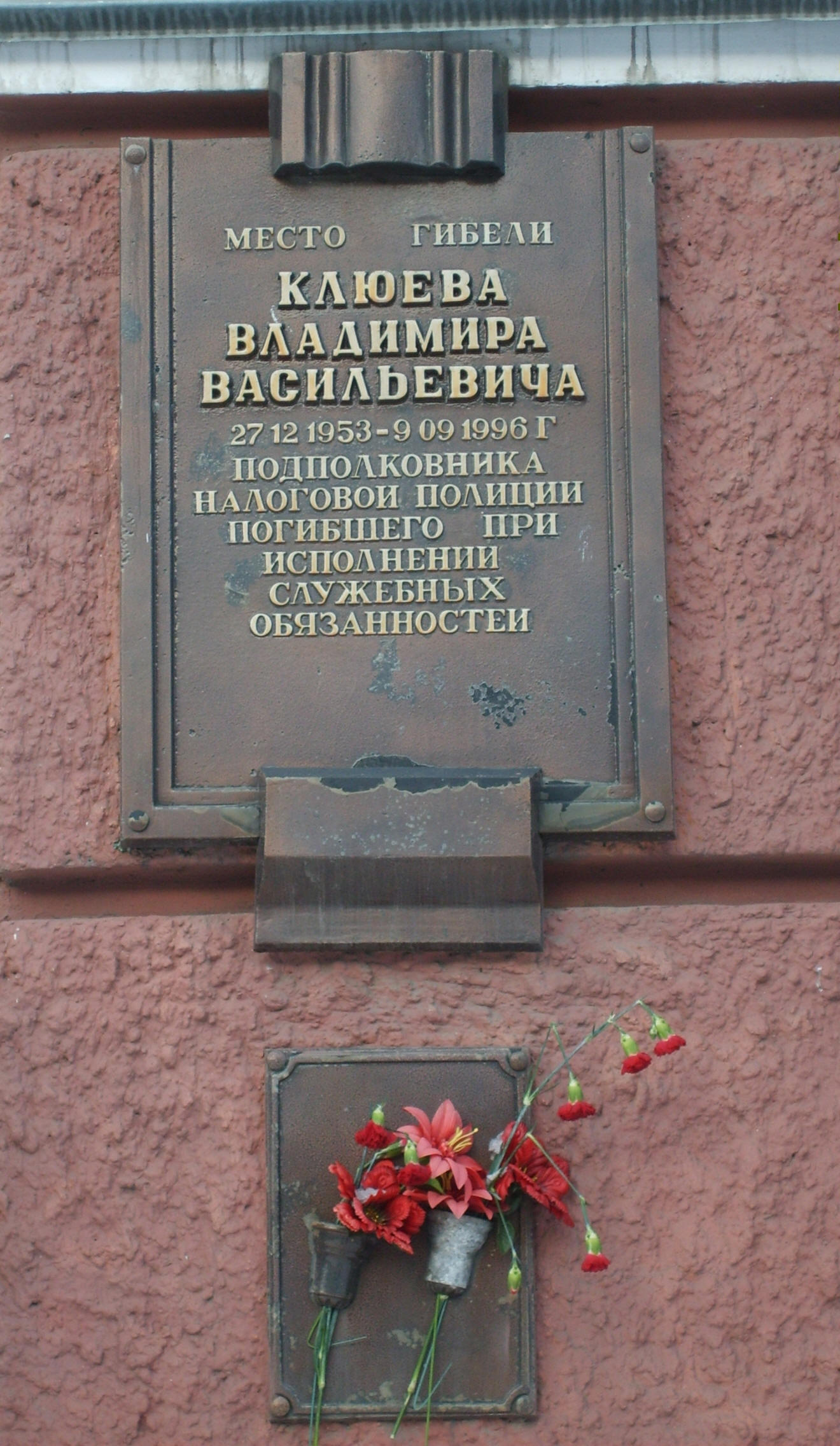 месте гибели была установлена мемориальная доска Клюеву на здании